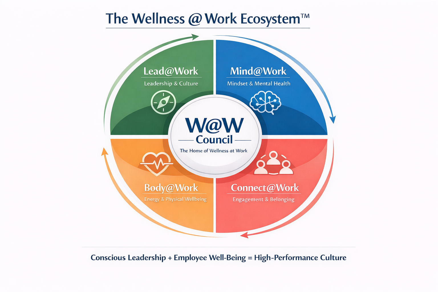 The Wellness @ Work Ecosystem™ is a proven, leadership-driven framework that connects employee well-being directly to engagement, productivity, and retention.
